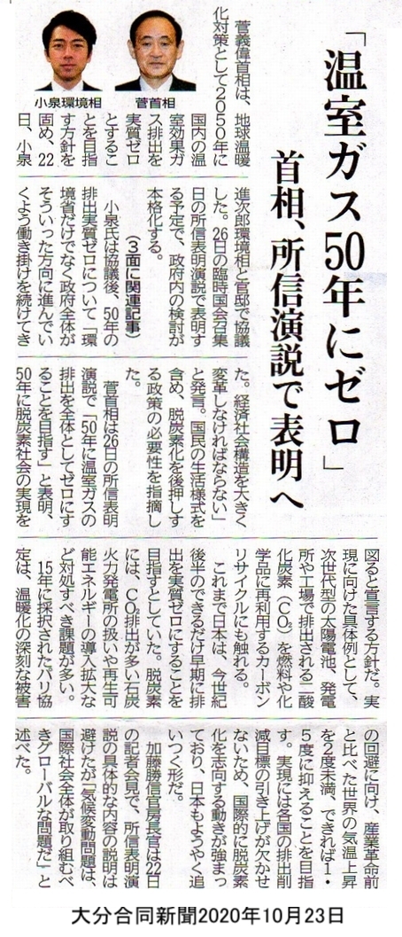 菅政権の出鱈目な政権運営が続いています。今度は海外の動きに追従して、2050年までに実質CO2排出量をゼロにすることを所信表明するということです。まずは新聞報道から。