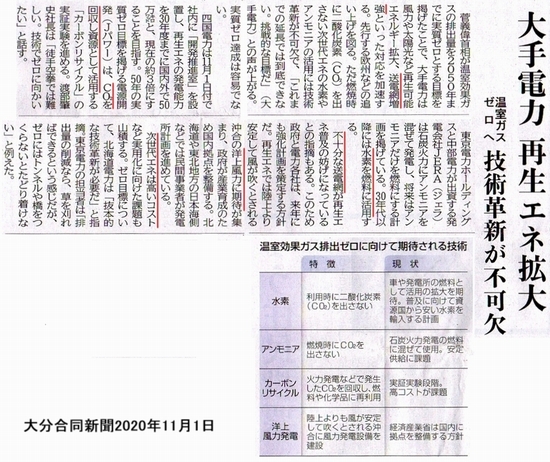 今月一日の大分合同新聞に、県南地域で五つの大規模な風力発電計画が進行中であるという記事が載りました。